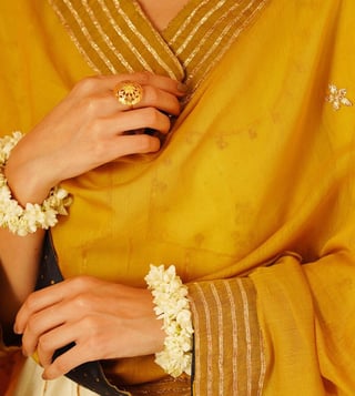 Elevate your ethnic wear with the Jaypore Mustard Yellow Cotton Silk Gota Patti Collection Dupatta. This exquisite piece combines the luxurious blend of cotton and silk with intricate Gota Patti detailing, adding a touch of elegance to any outfit. The vibrant mustard yellow hue makes it a versatile accessory for both casual and festive occasions. Embrace the timeless beauty and craftsmanship of Indian textiles with this must-have Dupatta that effortlessly enhances your style and adds a pop of color to your wardrobe.