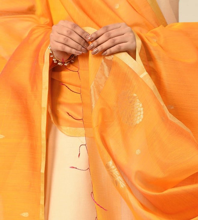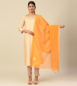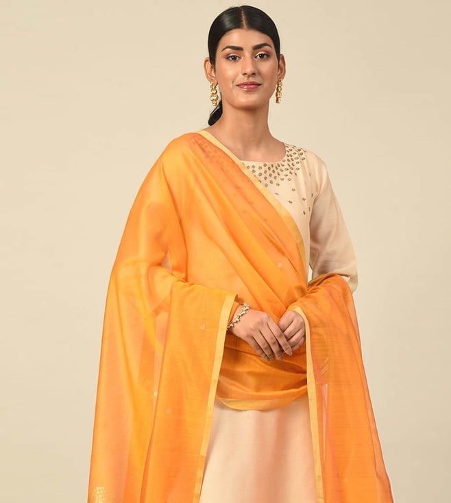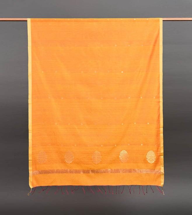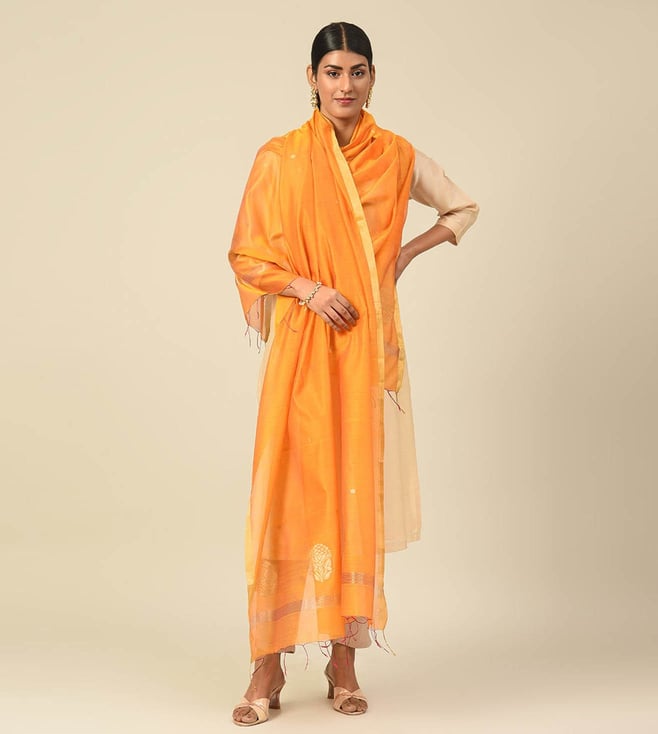 Jaypore Mustard Yellow Cotton Silk Hand Woven Dupatta