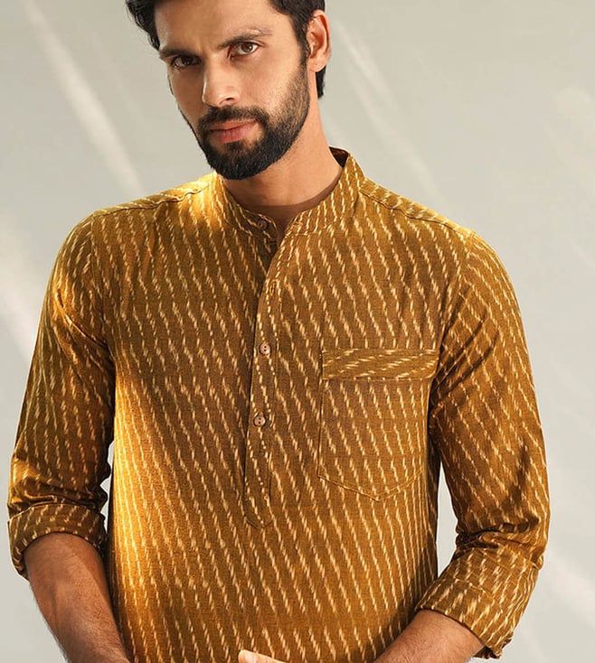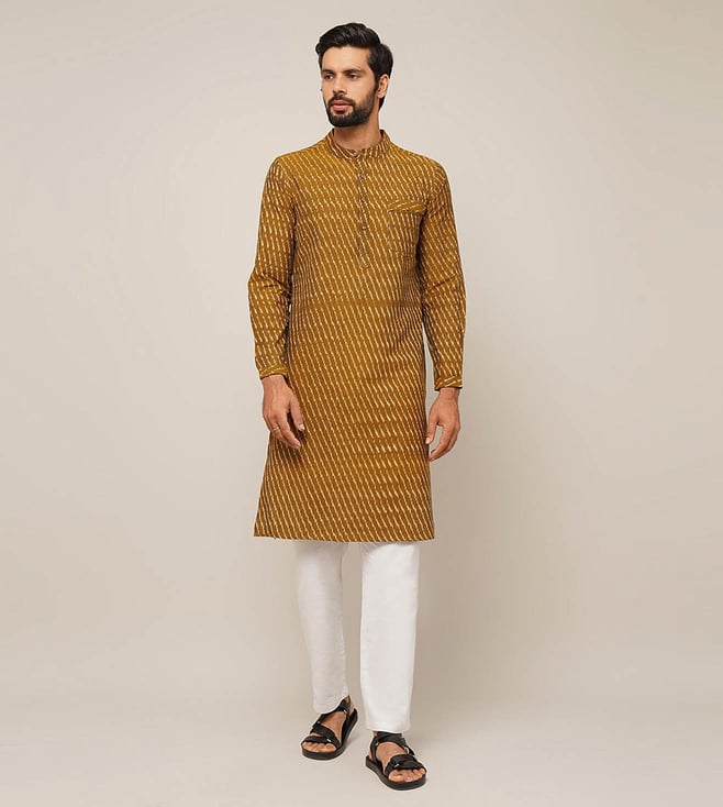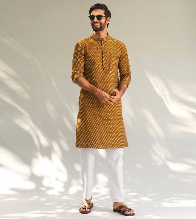 Elevate your everyday style with the Jaypore Mustard Yellow Stripes Regular fit Kurta. This trendy kurta features a vibrant mustard yellow hue with chic stripes, perfect for adding a pop of color to your wardrobe. The regular fit ensures comfort and ease of movement, making it ideal for both casual and formal occasions. Crafted from high-quality fabric, this kurta is not only stylish but also durable. Embrace effortless elegance with this versatile piece that will surely become a staple in your wardrobe.