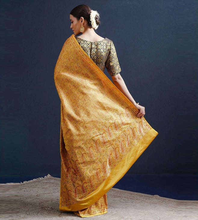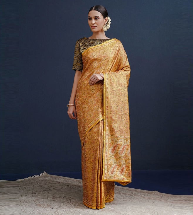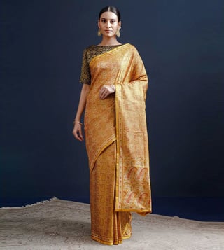 Jaypore Mustard Yellow Self Design Banarasi Saree