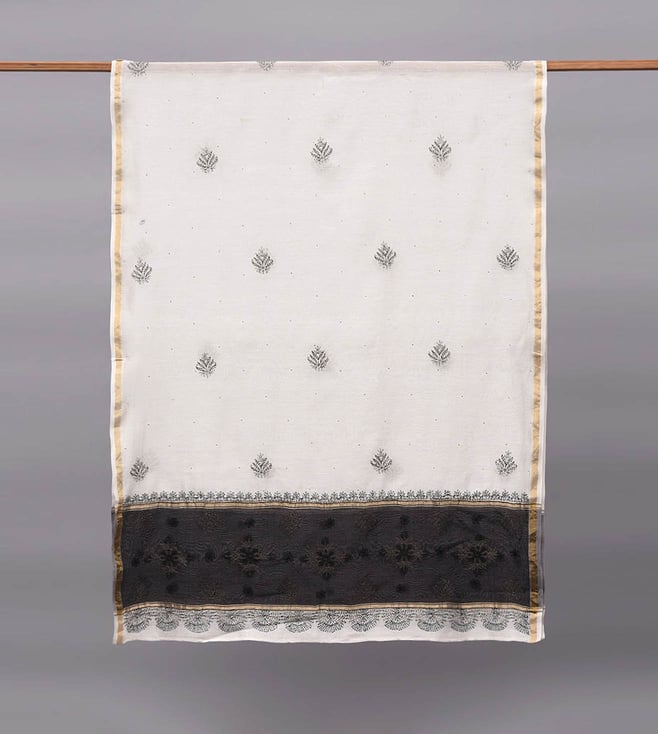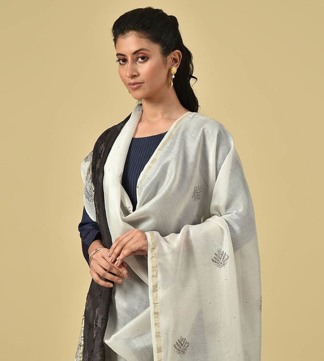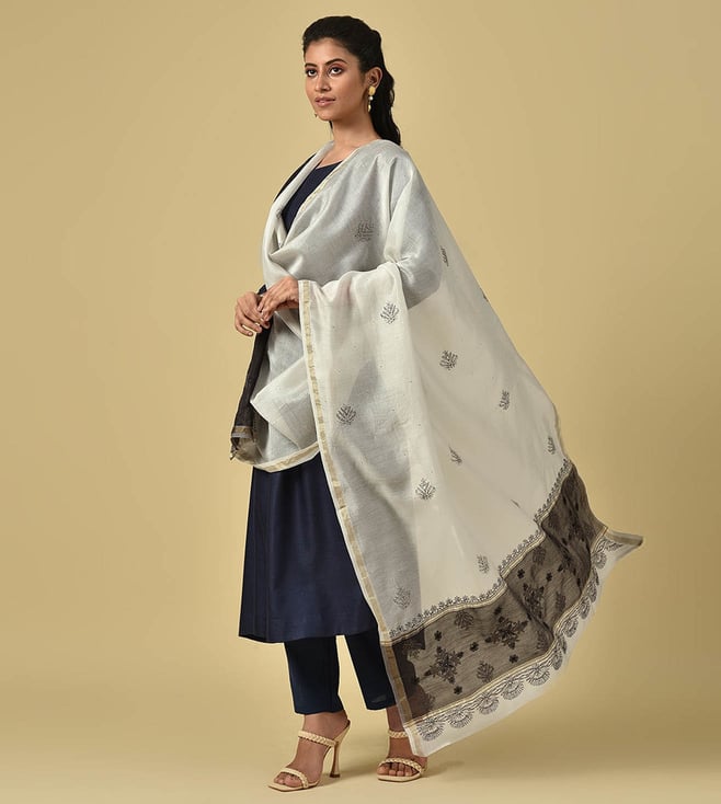 Jaypore Natural White Cotton Silk Chikankari Dupatta