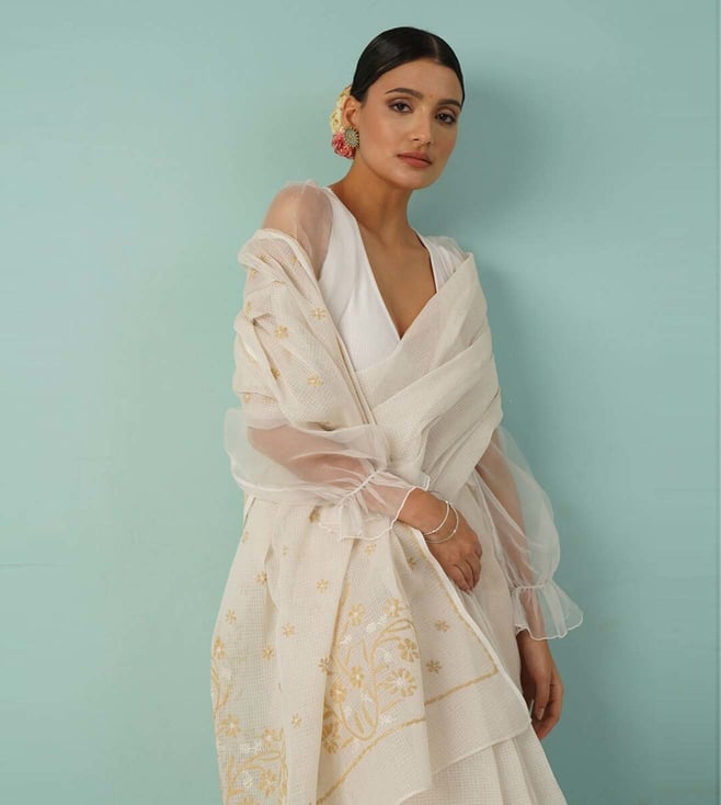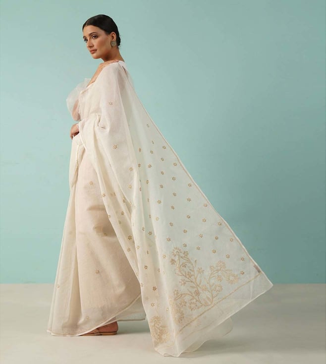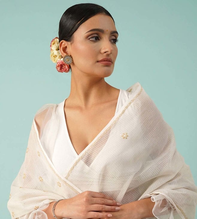 Elevate your wardrobe with the Jaypore Natural White Embroidered Chikankari Saree from our Nazanin collection. Crafted from the finest Cotton Silk, this exquisite piece showcases the beauty of traditional Indian craftsmanship. Embrace modern Indian aesthetics with intricate Chikankari embroidery that adds a touch of elegance to any outfit. Discover more artisanal treasures in our Saree range and make a statement with this timeless piece.