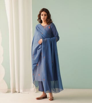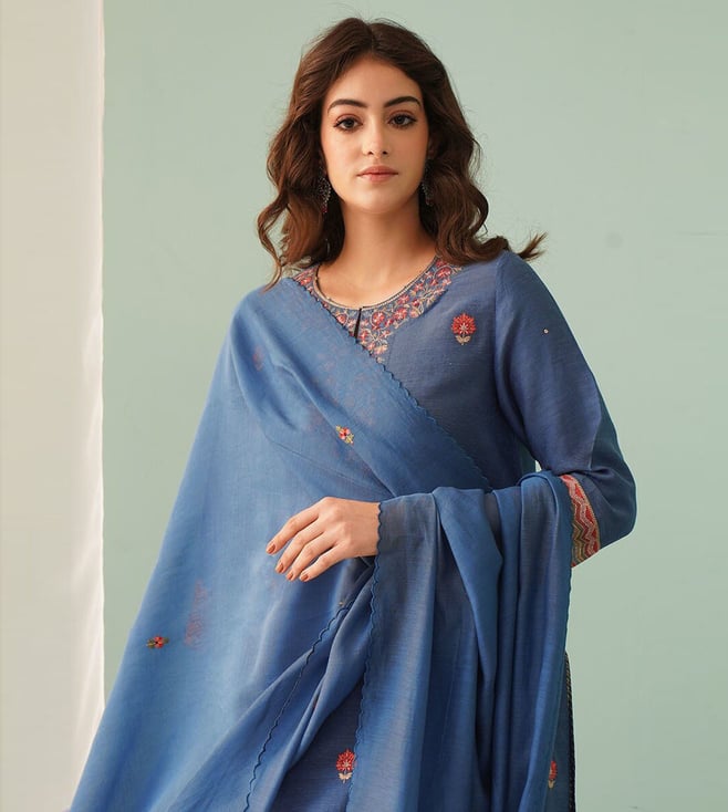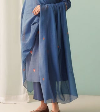 Jaypore Navy Cotton Silk Collection Dupatta