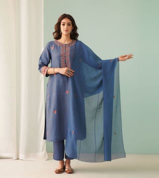 Elevate your ethnic attire with the Jaypore Navy Cotton Silk Collection Dupatta. Crafted from a luxurious blend of cotton and silk, this stunning accessory exudes elegance and sophistication. The rich navy hue adds a touch of regality to any outfit, while the lightweight fabric ensures all-day comfort. Whether you're heading to a wedding or a festive celebration, this dupatta is the perfect finishing touch to elevate your look. Add a touch of luxury to your wardrobe with this timeless piece from Jaypore.