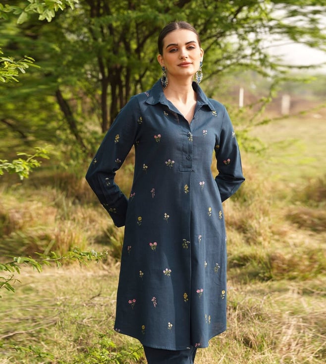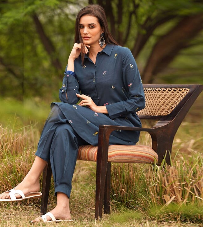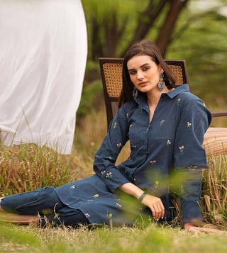 Jaypore Navy Embroidered Co-Ord Set