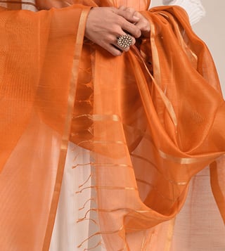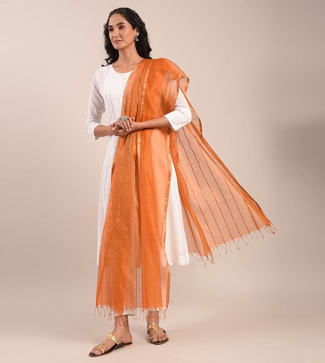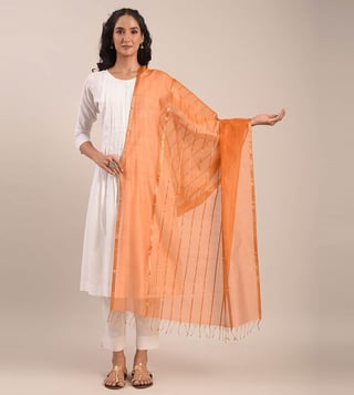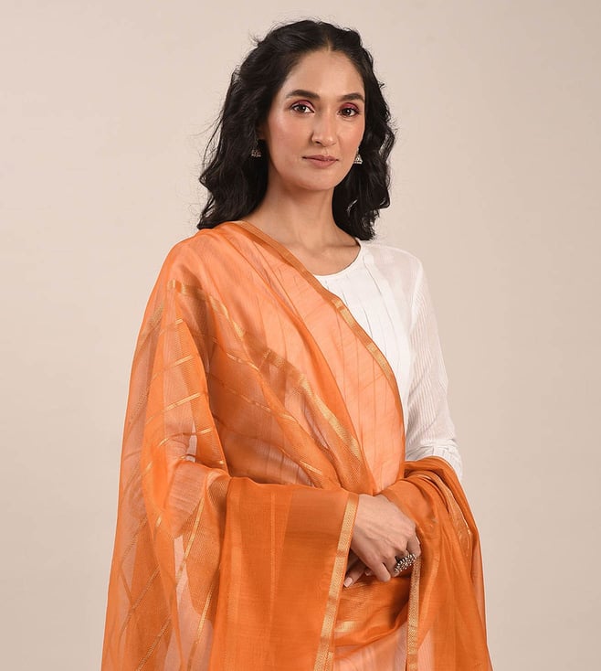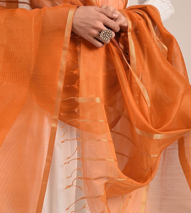 Jaypore Orange Cotton Silk Hand Woven Dupatta