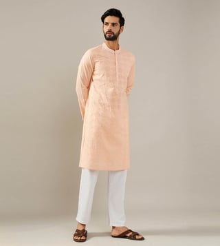 Elevate your everyday style with the Jaypore Peach Embroidery Straight fit Kurta. Crafted with exquisite embroidery detailing, this kurta offers a perfect blend of elegance and comfort. The straight fit design provides a flattering silhouette, while the soft peach color adds a touch of sophistication to any outfit. Whether you're heading to work or a special occasion, this kurta is sure to make you stand out. Upgrade your wardrobe with this versatile piece that effortlessly combines traditional craftsmanship with modern flair.