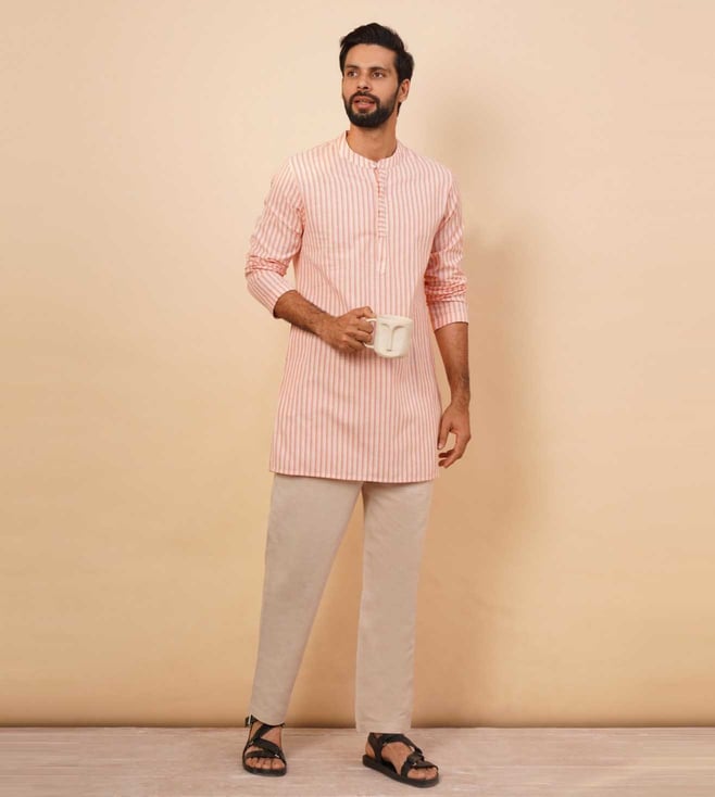 Jaypore Peach Cotton Flax Straight Fit Kurta