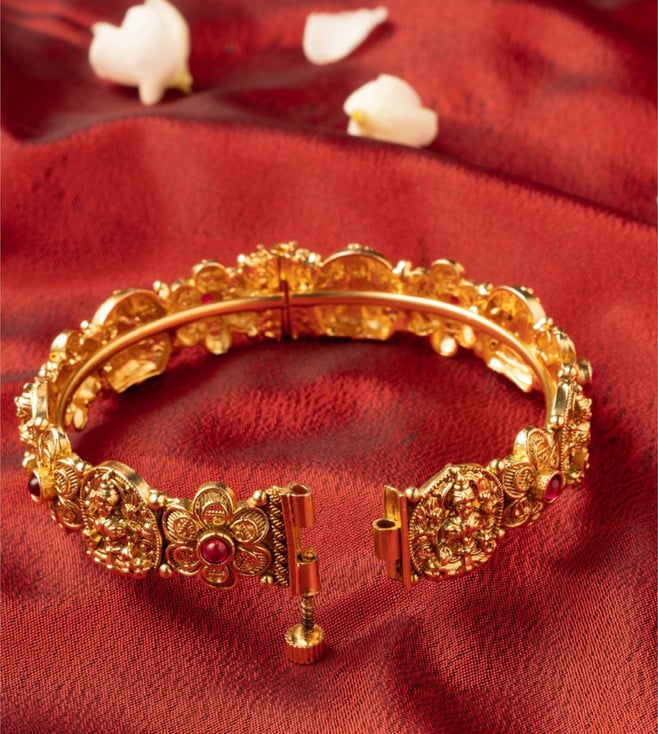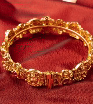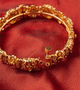 Introducing women brass hinged bangle made of the finest brass. This exquisite piece of craftsmanship comes from our kaelika collection. Bring home a piece of modern indian aesthetic, reflecting crafts. Explore more artisanal finds from our bangles range.
