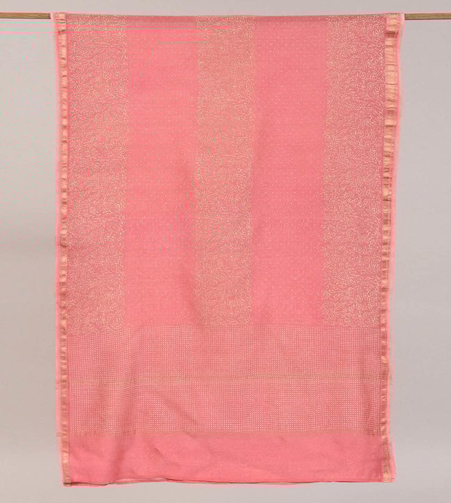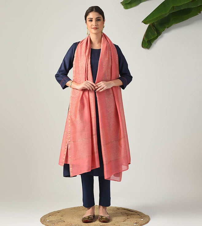 Jaypore Pink Cotton Silk Block Printed Dupatta