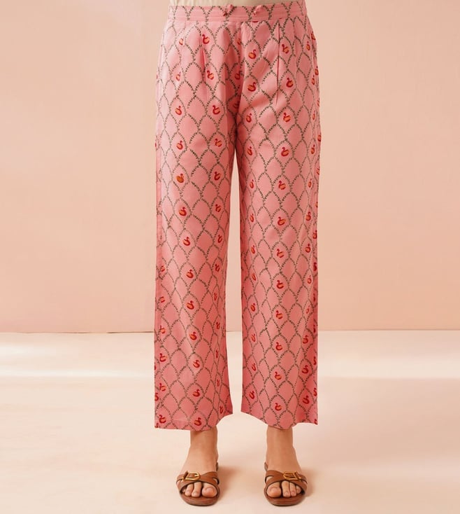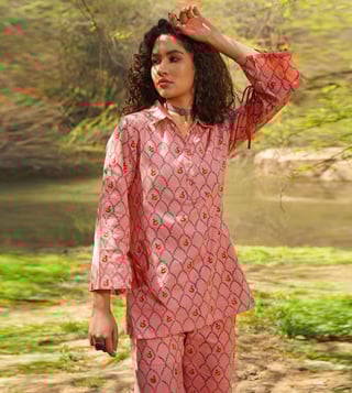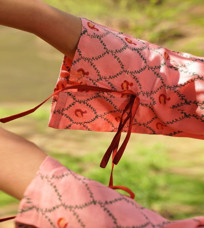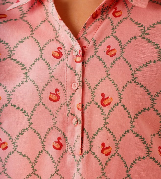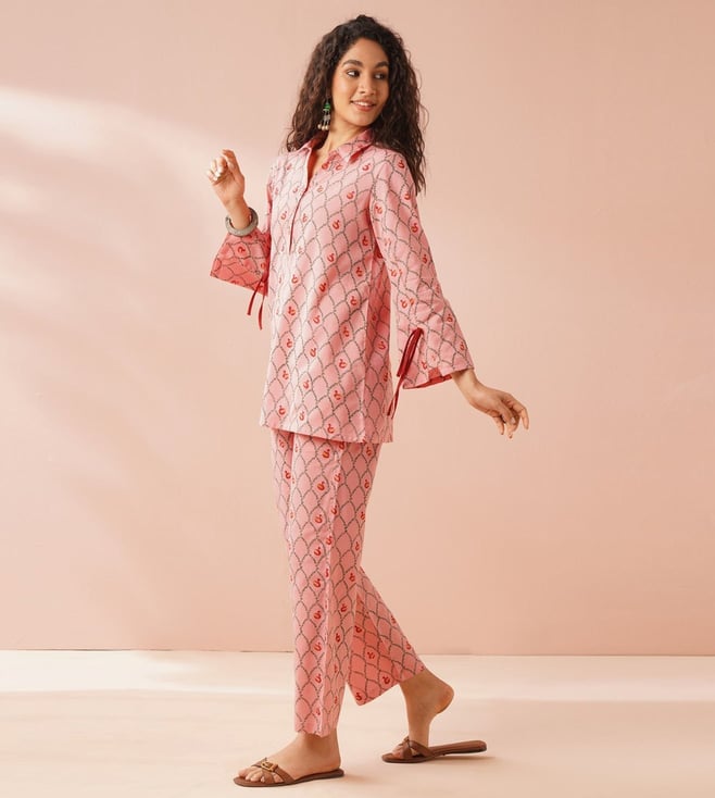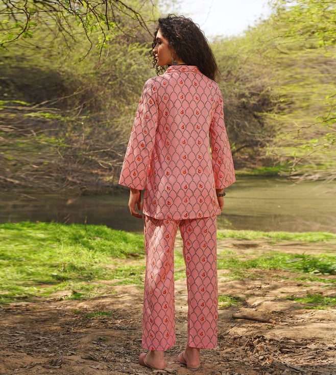 Jaypore Pink Flax Block Print Straight Fit Co-Ord Set