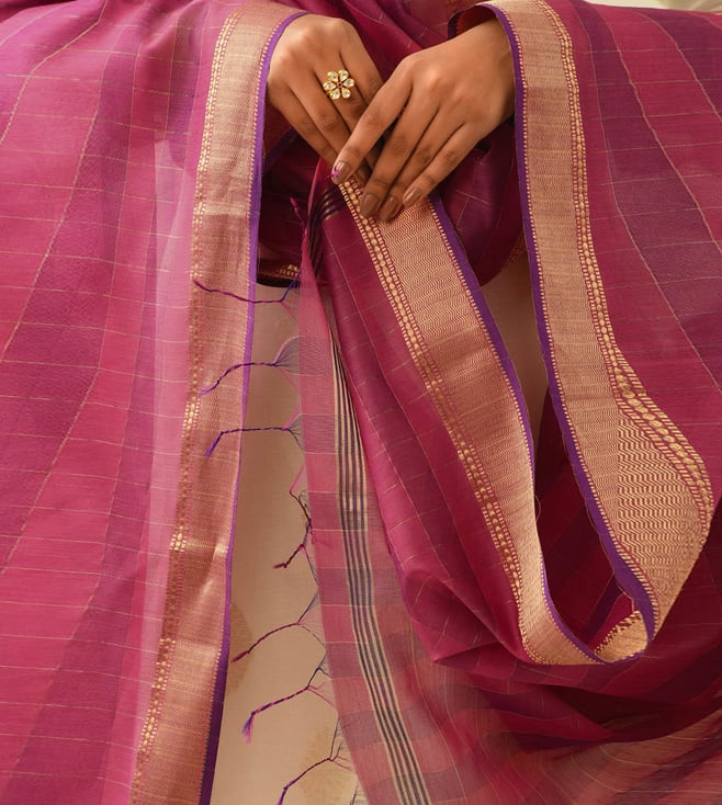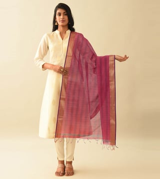 Jaypore Purple Cotton Silk Hand Woven Dupatta