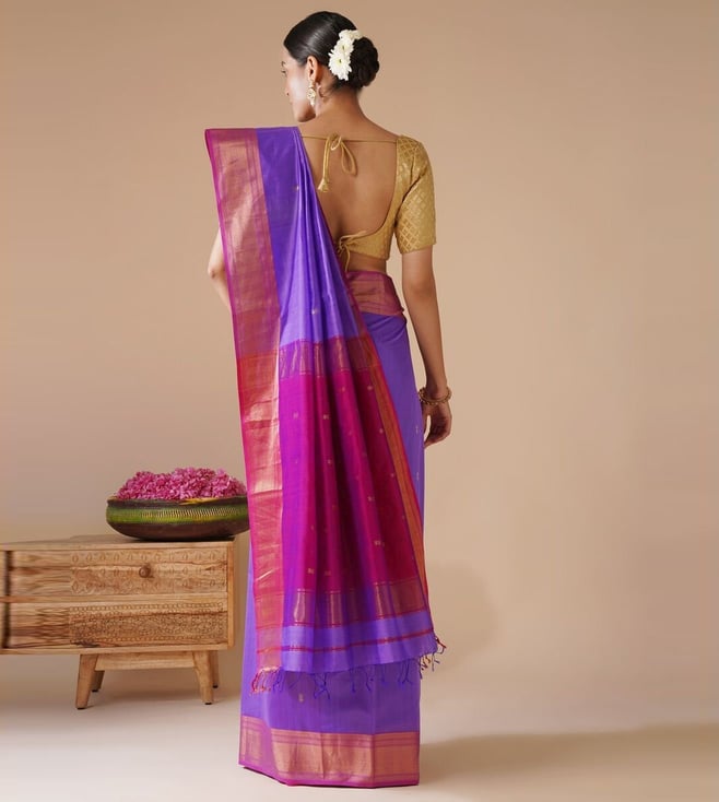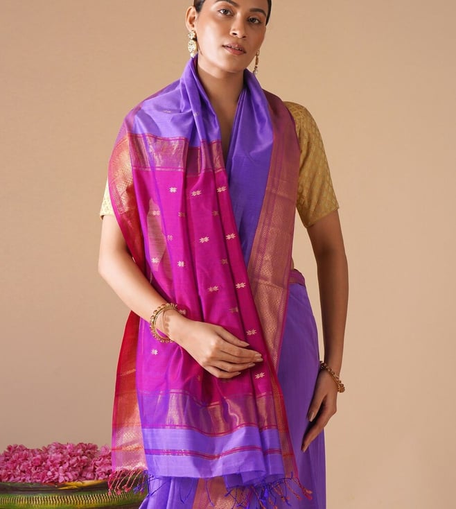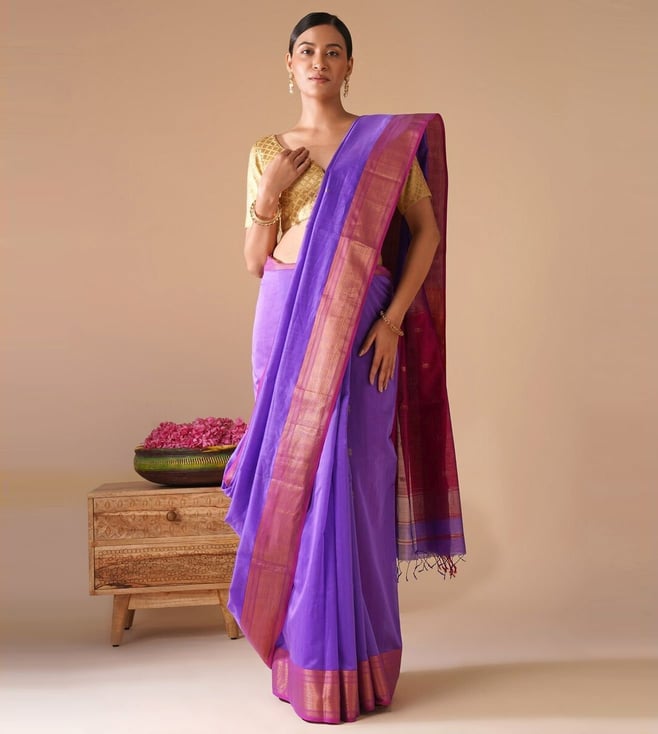 Jaypore Purple Woven Maheshwari Saree