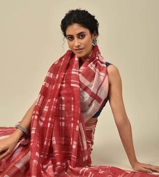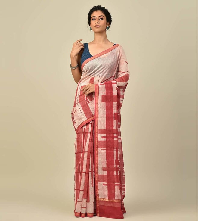Jaypore Red Block Print Saree