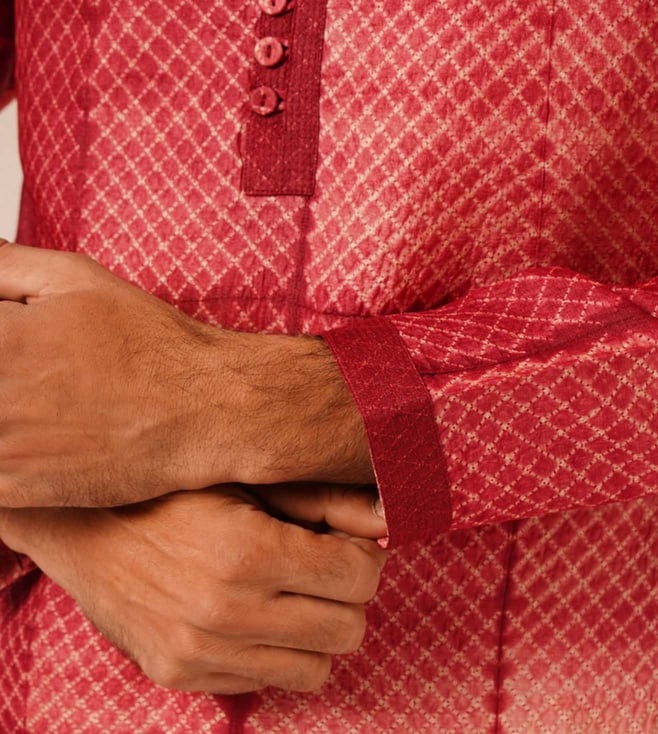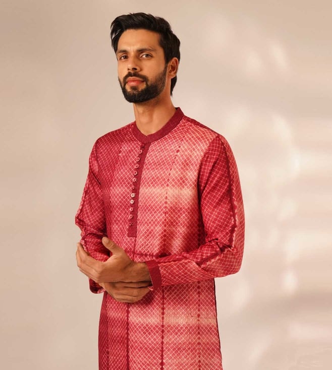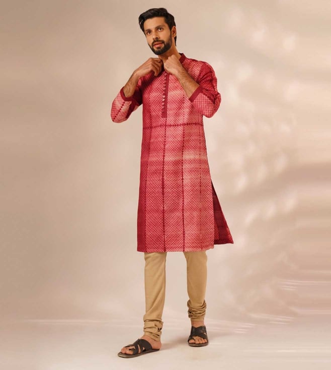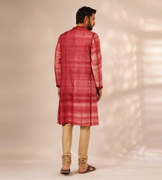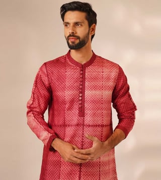 Elevate your wardrobe with the Jaypore Red Silk Viscose Shibori Straight Fit Kurta. Crafted from luxurious silk and viscose, this kurta combines traditional Shibori dyeing techniques with a modern straight fit design for a unique and sophisticated look. Perfect for any occasion, this stylish piece offers a flattering silhouette and effortless elegance. Make a statement with this versatile and chic kurta that seamlessly transitions from day to night with ease. Upgrade your style with the Jaypore Red Silk Viscose Shibori Straight Fit Kurta.