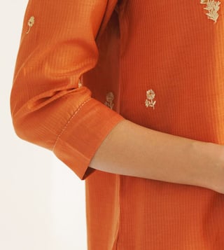 Elevate your wardrobe with our Jaypore Rust Orange Cotton Silk Embroidered Regular Fit Shirt. Crafted from a luxurious blend of cotton and silk, this shirt exudes sophistication and comfort. The intricate embroidery adds a touch of elegance, making it perfect for both casual and formal occasions. With its regular fit design, this shirt offers a flattering silhouette while ensuring all-day comfort. Stand out from the crowd and make a statement with this unique and stylish piece.