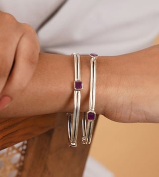 Introducing women silver bangle made of the finest silver. This exquisite piece of craftsmanship comes from our arya collection. Bring home a piece of modern indian aesthetic, reflecting crafts. Explore more artisanal finds from our bangles range.