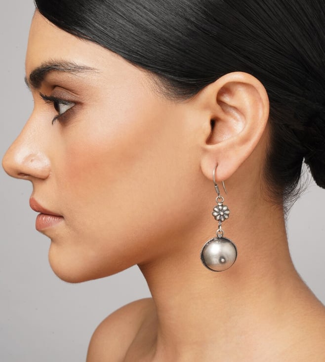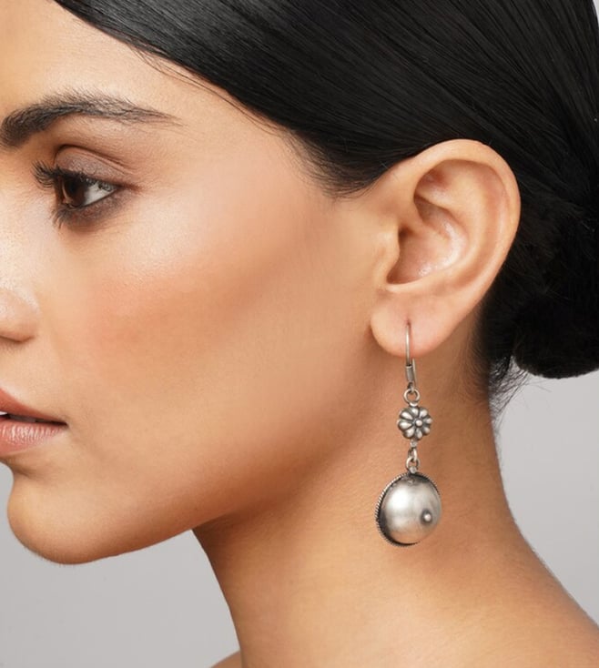 Introducing women silver hook silver danglers made of the finest silver. This exquisite piece of craftsmanship comes from our chahak collection. Bring home a piece of modern indian aesthetic, reflecting crafts. Explore more artisanal finds from our earrings range.