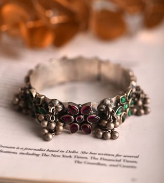 Introducing women tribal silver bangle made of the finest silver. This exquisite piece of craftsmanship comes from our tribal collection. Bring home a piece of modern indian aesthetic, reflecting tribal crafts. Explore more artisanal finds from our bangles range.