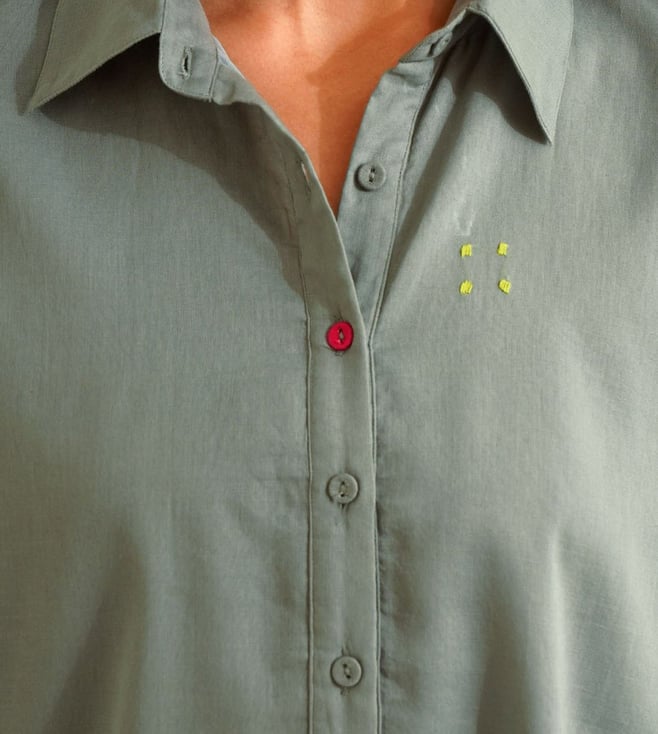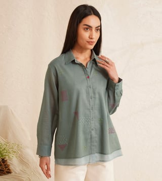 Elevate your everyday style with our Jaypore Teal Blue Cotton Hand Embroidered Shirt. Crafted with care and attention to detail, this shirt features intricate hand embroidery that adds a touch of artistry to your wardrobe. Made from soft cotton, it offers comfort and breathability, perfect for all-day wear. Whether you're dressing up for a special occasion or adding a unique twist to your casual look, this shirt is sure to make a statement. Embrace the beauty of handcrafted fashion with Jaypore.