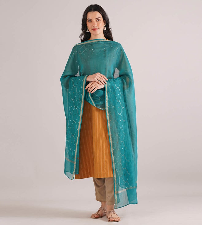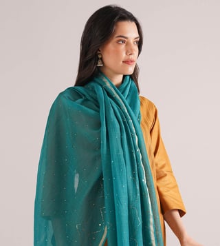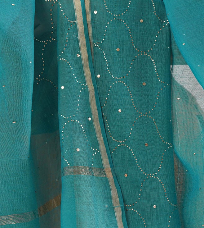 Jaypore Teal Blue Cotton Silk Mukaish Dupatta