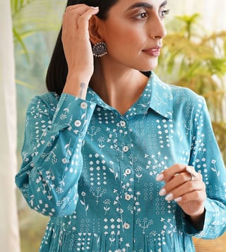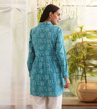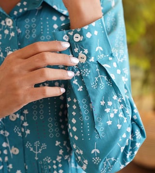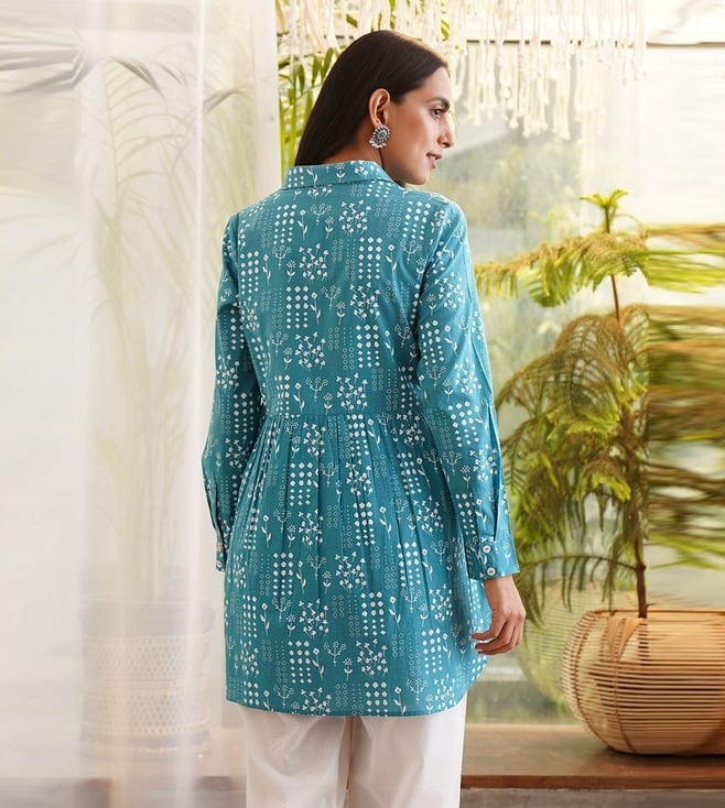 Jaypore Teal Blue Printed Regular Fit Top