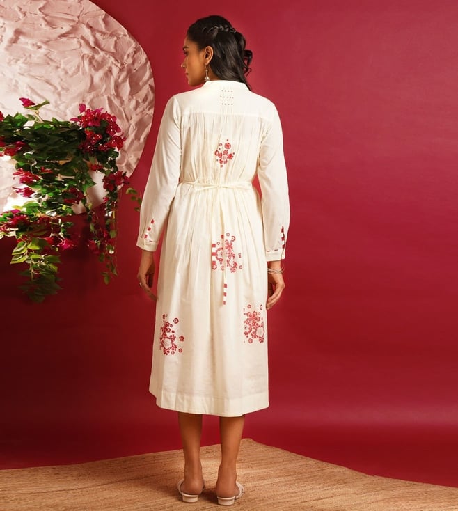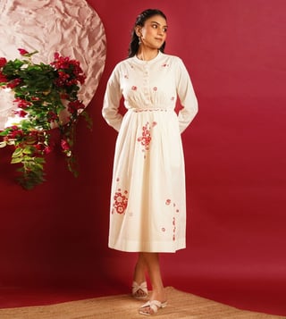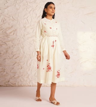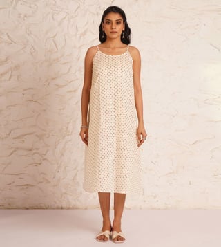 Jaypore White Cotton Printed Block Print Dress