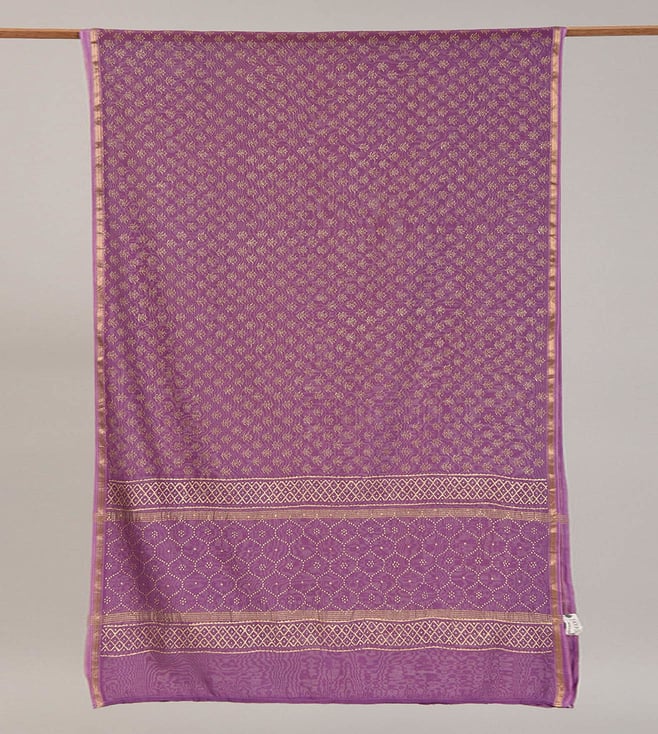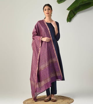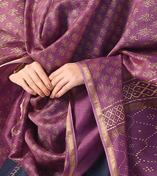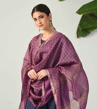 Jaypore Wine Purple Cotton Silk Block Printed Dupatta