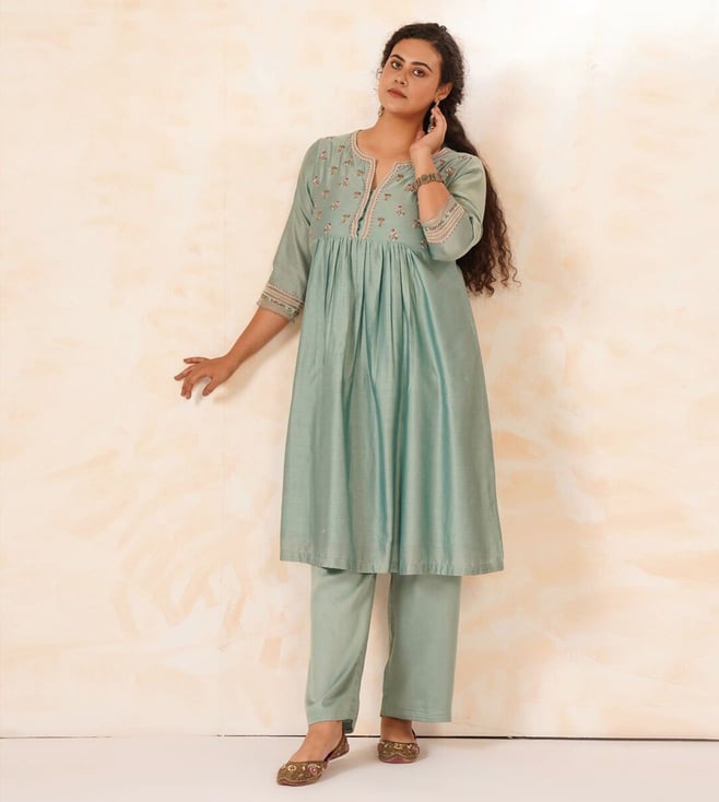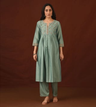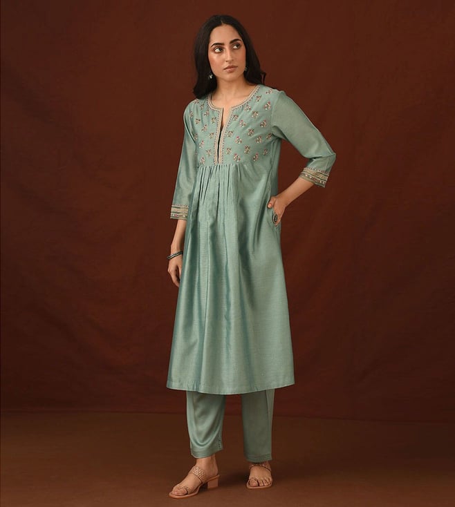 Jaypore Women Blue Straight Fit Kurta and Pant