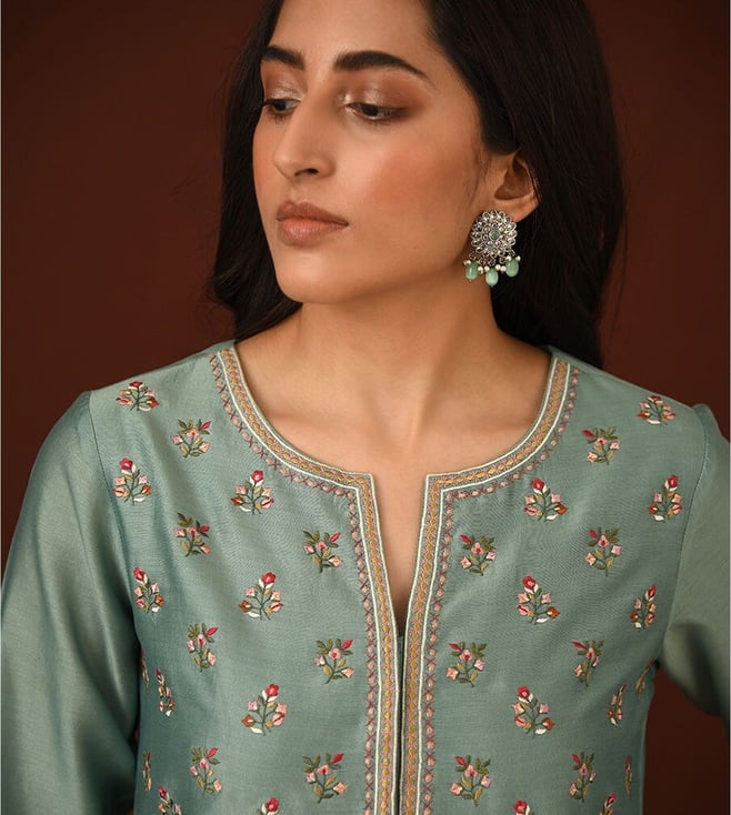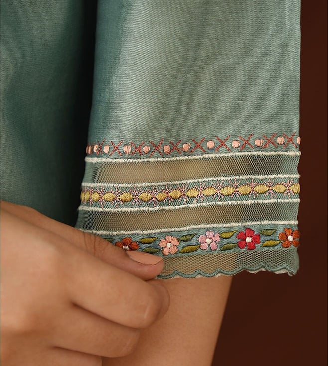 Elevate your festive wardrobe with the Jaypore women blue straight fit kurta and pant set. Crafted from a luxurious blend, this set exudes elegance and comfort. The three-quarter sleeves and round neck add a touch of sophistication, making it perfect for any special occasion. Whether you are attending a wedding or a festive celebration, this outfit will make you stand out in style. Embrace the beauty of traditional indian fashion with this stunning ensemble.