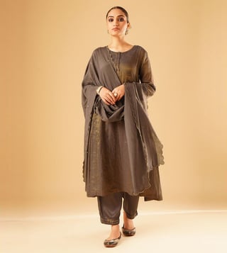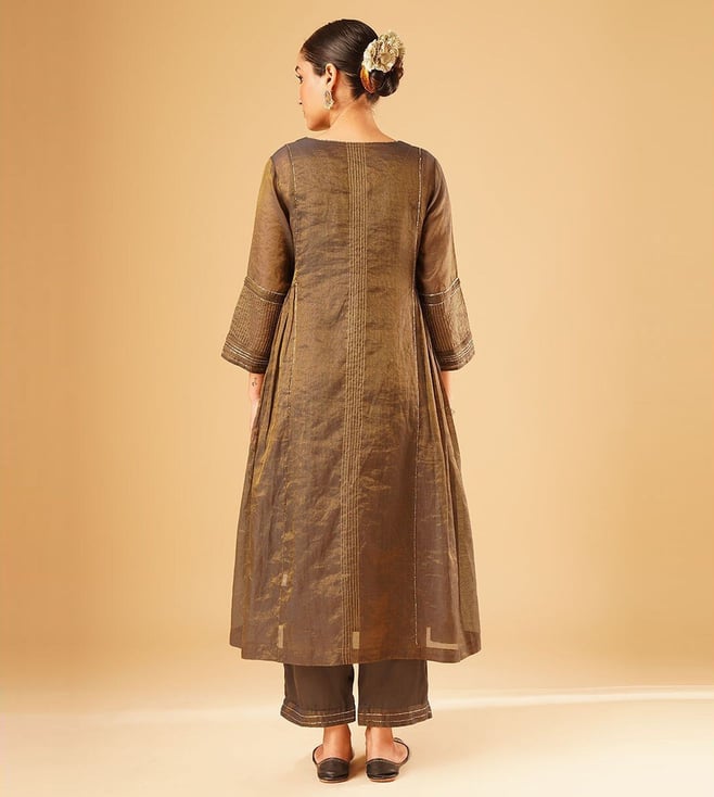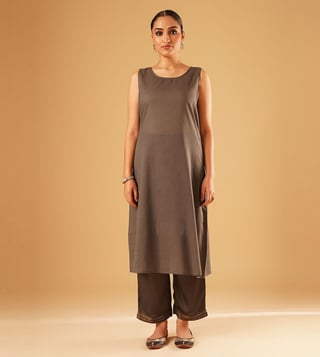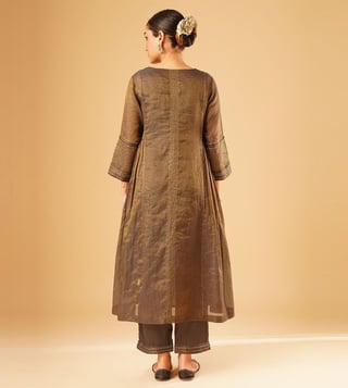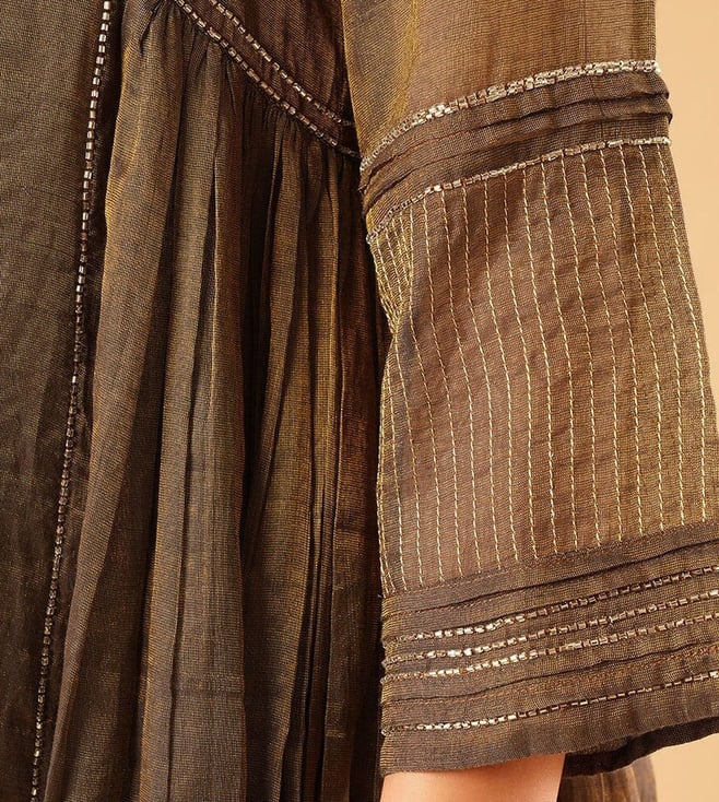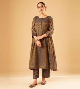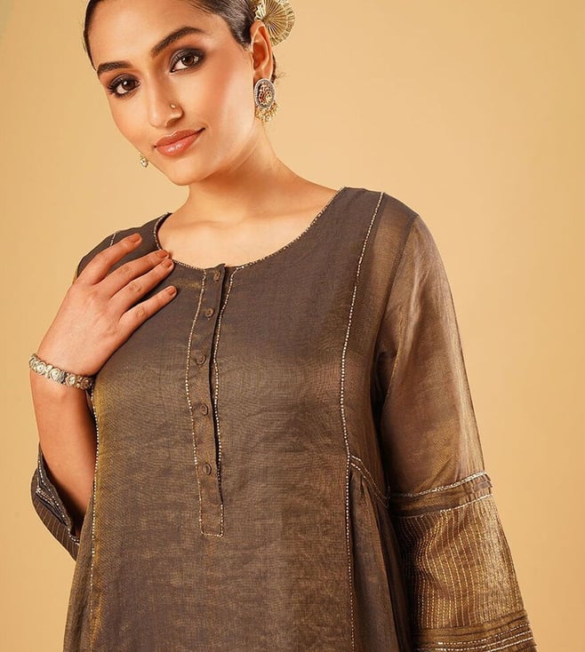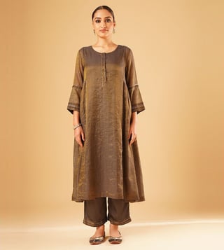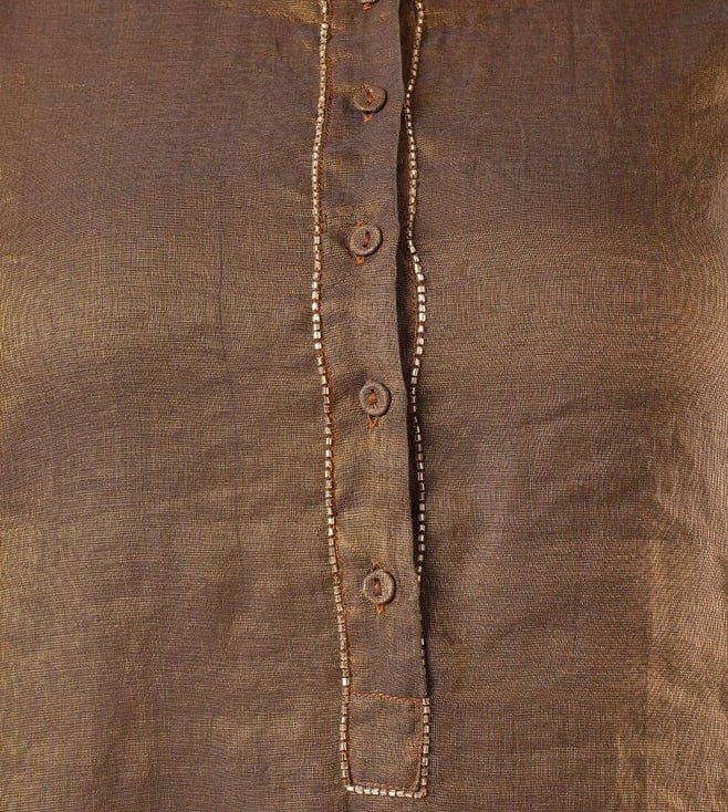 Elevate your festive wardrobe with the Jaypore women brown hand embroidered loose fit kurta. Made from a luxurious blend of fabrics, this kurta boasts intricate hand embroidery that adds a touch of elegance to any outfit. The loose fit and three-quarter sleeves provide all-day comfort, while the round neck adds a modern touch. Perfect for special occasions or everyday wear, this kurta is a must-have for women who appreciate quality craftsmanship and timeless style.