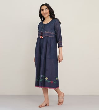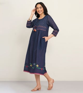 Elevate your everyday style with the Jaypore women indigo blue regular fit kurta and slip. Made from breathable cotton, this versatile ensemble is perfect for daily wear. The three-quarter sleeves and keyhole neck add a touch of elegance, while the regular fit ensures comfort all day long. Whether you are running errands or meeting friends for brunch, this kurta and slip combo is a must-have addition to your wardrobe. Experience effortless chic with Jaypore.