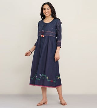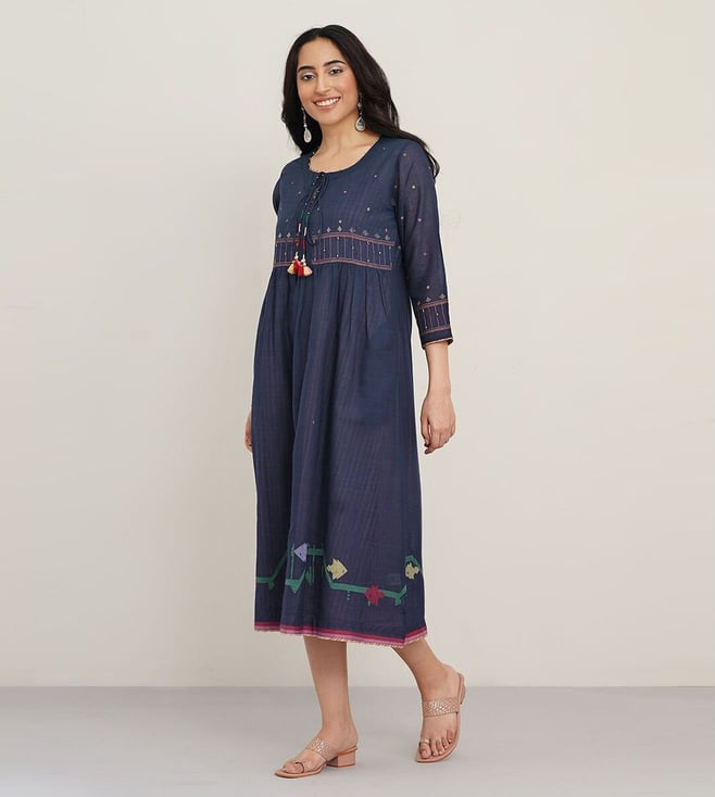 Jaypore Women Indigo Blue Regular Fit Kurta and Slip