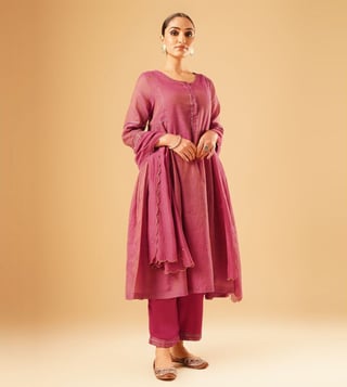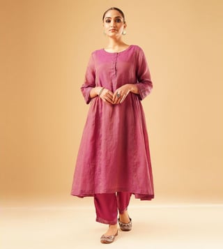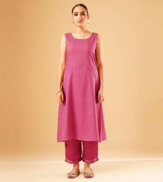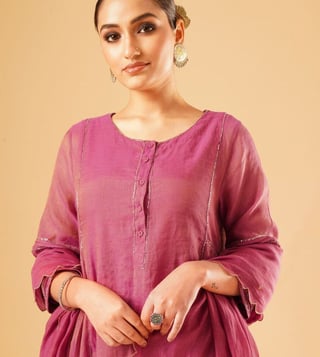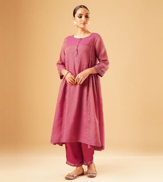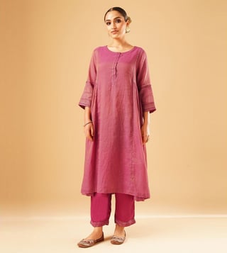 Elevate your festive wardrobe with the Jaypore women magenta hand embroidered loose fit kurta. Crafted from a luxurious blend, this kurta features intricate hand embroidery that adds a touch of elegance to any outfit. The loose fit and three-quarter sleeves ensure comfort while the round neck adds a classic touch. Perfect for special occasions or everyday wear, this kurta is a versatile and stylish addition to any woman's closet. Embrace the beauty of traditional indian craftsmanship with this stunning piece from Jaypore.
