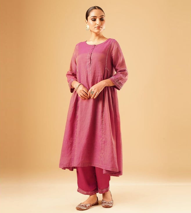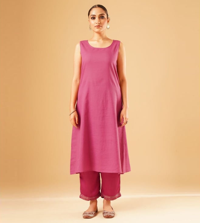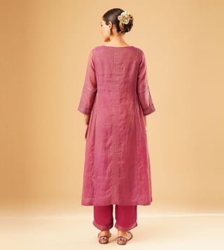 Jaypore Women Magenta Hand Embroidered Loose Fit Kurta