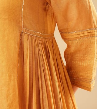 Jaypore Women Mustard Yellow Hand Embroidered Loose Fit Kurta