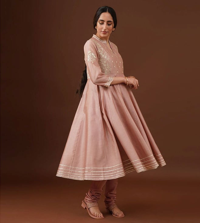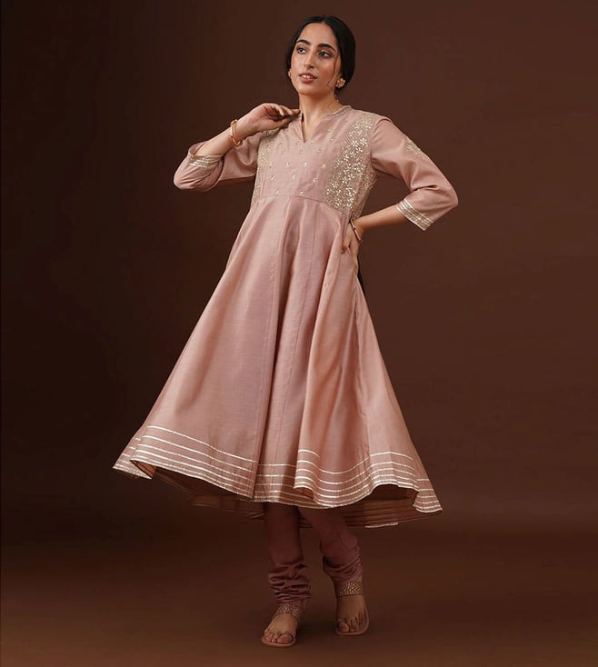 Jaypore Women Pink Gota Patti Flared Fit Kurta