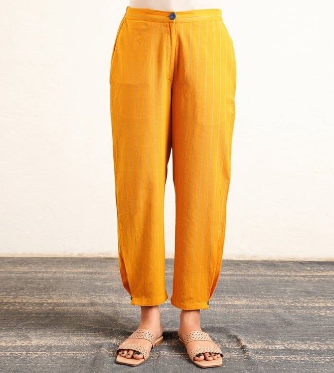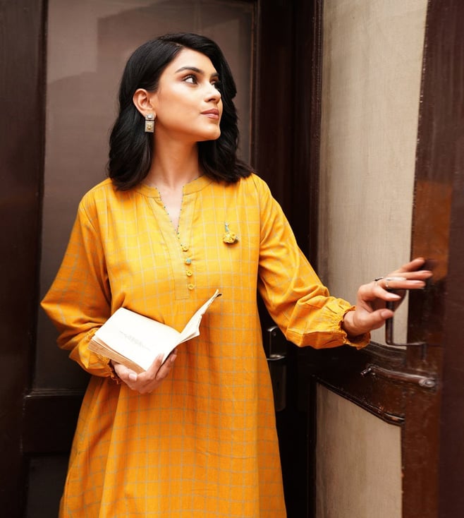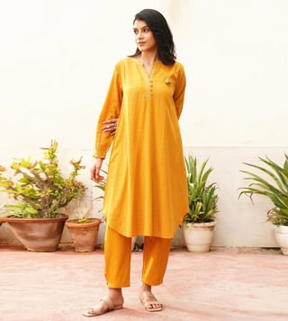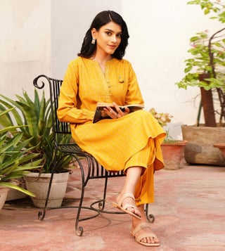 Jaypore Yellow Checked Cotton Straight Co-Ord Set