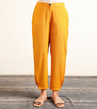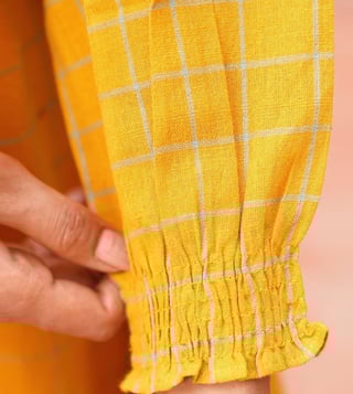 Elevate your style with the Jaypore Yellow Checked Cotton Straight Co-Ord Set. Crafted from soft cotton, this set features a vibrant yellow checked pattern that exudes a sense of playfulness and charm. The straight silhouette offers a flattering fit, while the coordinating top and bottoms make getting dressed a breeze. Perfect for both casual outings and special occasions, this set is versatile and effortlessly chic. Add a pop of color to your wardrobe with this must-have ensemble.