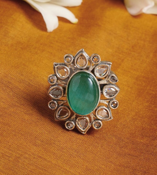 Green Silver Plated Adjustable Ring