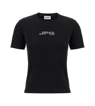 The Jean Paul Gaultier Black JPG Baby T-Shirt is a chic embodiment of modern elegance, tailored for the fashion-forward woman. Its slim fit design accentuates the silhouette, crafted from a luxurious blend of 96% cotton and 4% elastane, ensuring both comfort and a flattering fit. The deep black hue exudes sophistication, while the subtle pattern adds a touch of intrigue. Perfect for any occasion, this t-shirt seamlessly combines style and versatility, making it a must-have staple in any wardrobe.