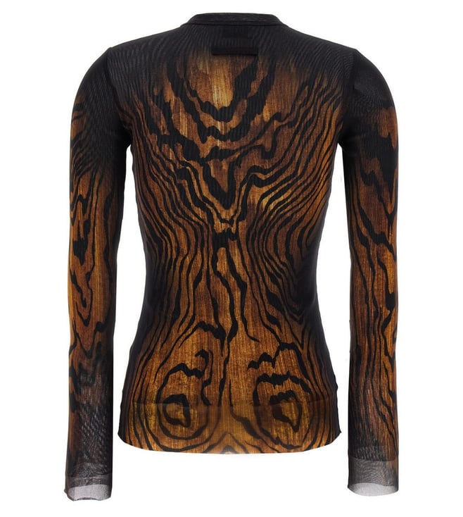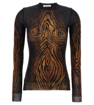 The Jean Paul Gaultier Brown Wood Top is a masterpiece of modern fashion, blending earthy elegance with a contemporary edge. Its rich brown hue evokes the warmth of natural wood, while the slim fit design accentuates the feminine silhouette with grace. Crafted from 100% polyamide, this top offers a luxurious feel and a sleek finish. The unique pattern adds a touch of avant-garde flair, making it a standout piece. Designed for the modern woman, it seamlessly combines style and sophistication.