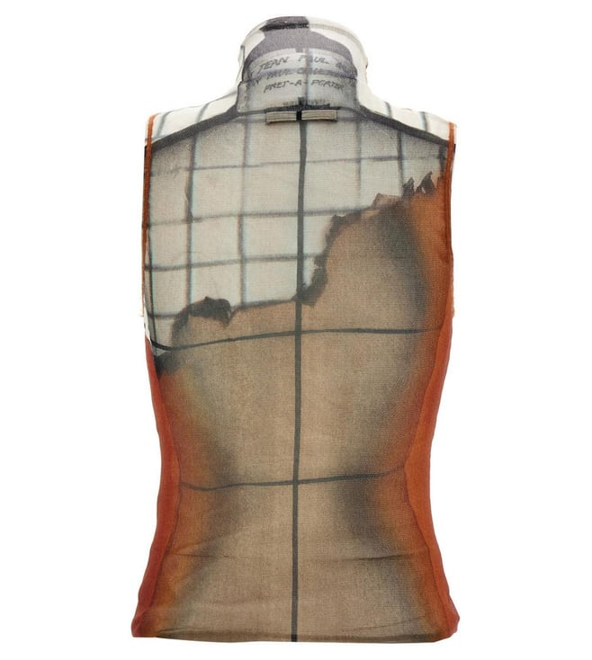 Ignite your wardrobe with the Jean Paul Gaultier Multicolor The Fire Top, a vibrant masterpiece in a slim fit design. Crafted from 100% polyamide, this top offers a lightweight, breathable feel, perfect for making a bold statement. The dynamic pattern dances with fiery hues, capturing the essence of a blazing sunset. Designed for the modern woman, its sleek closure ensures a seamless silhouette, making it an ideal choice for those who dare to stand out with confidence and flair.