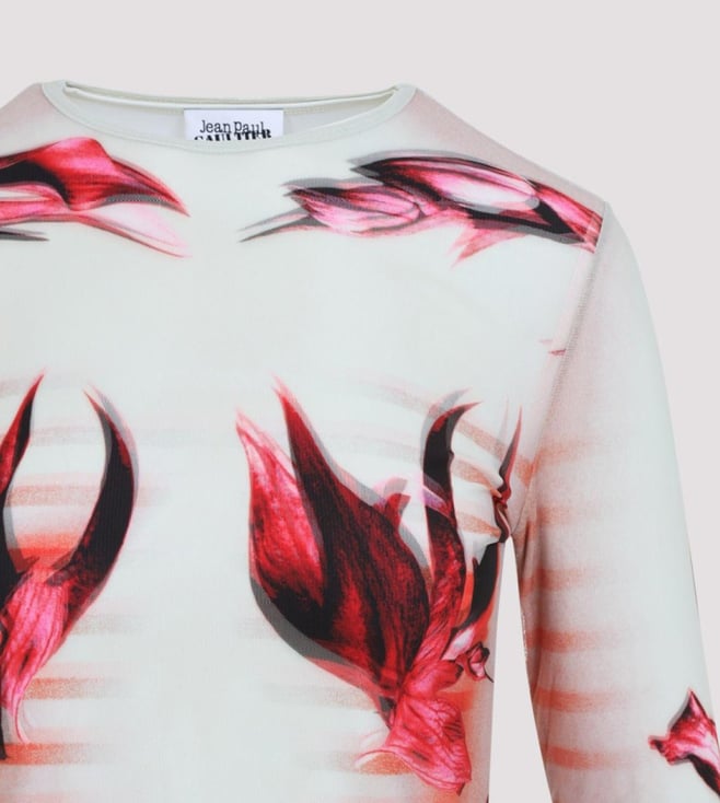 Jean Paul Gaultier White Double-Laye Printed Graphic Regular Fit Top