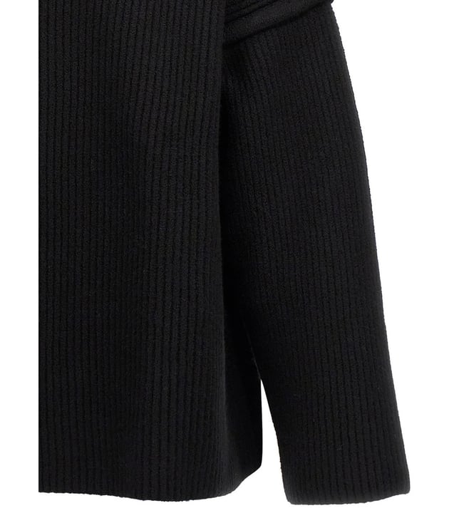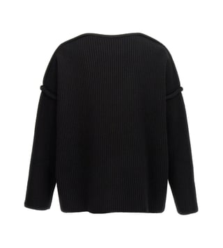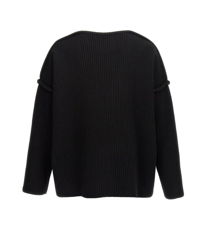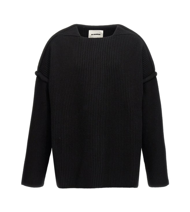 Elevate your style with the Jil Sander Black Sweater. Ribbed wool sweater with geometric neckline and long sleeves. True to size fit. Products purchased from Darveys are supported exclusively by the warranty/exchange policies of Darveys and its partner boutiques. Brand owners and their channel partners are not responsible for exchange/warranty services for items purchased through Darveys.
