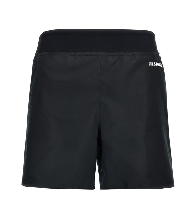 Elevate your wardrobe with the Jil Sander Black Regular Fit Shorts. Designed with shorts in stretch tech fabric with integrated cyclist, elastic waistband, contrasting logo print at the back, side slits. true to size fit, these trousers combine comfort and sophistication for everyday wear. Products purchased from Darveys are supported exclusively by the warranty/exchange policies of Darveys and its partner boutiques. Brand owners and their channel partners are not responsible for exchange/warranty services for items purchased through Darveys.
