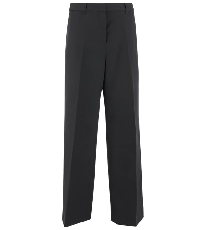 Elevate your wardrobe with the Jil Sander Black Tailored Fit Trousers. Designed with tailored trousers with loose leg but with the possibility of tightening the ankle through straps, front pences, high waist. equipped with removable and adjustable belt. true to size fit, german size, these trousers combine comfort and sophistication for everyday wear.