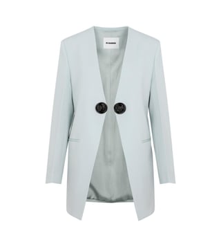 The Jil Sander Light Blue Jacket is a masterpiece of minimalist elegance, crafted for the discerning individual who values both style and substance. Its serene azure hue evokes the tranquility of a clear sky, while the sleek, tailored silhouette flatters every form. Constructed from premium materials, it offers a whisper of warmth, perfect for transitional seasons. Subtle details, like the discreet pockets and refined stitching, enhance its sophisticated allure, making it a timeless addition to any wardrobe.