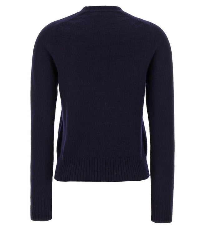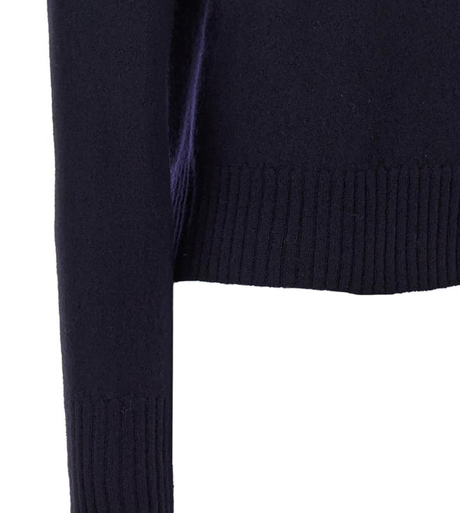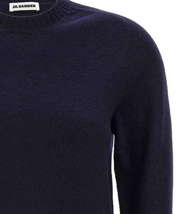 Dive into the serene elegance of the Jil Sander Navy Blue Wool Sweater, a masterpiece of minimalist design. Crafted from 100% pure wool, this sweater envelops you in warmth and luxury. Its deep navy hue evokes the tranquility of twilight, while the subtle pattern adds a touch of sophistication. Designed for the modern woman, it features a seamless closure that enhances its sleek silhouette. Perfect for any occasion, this sweater is a timeless addition to your wardrobe, exuding both comfort and style.