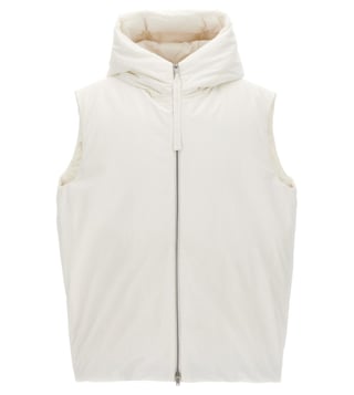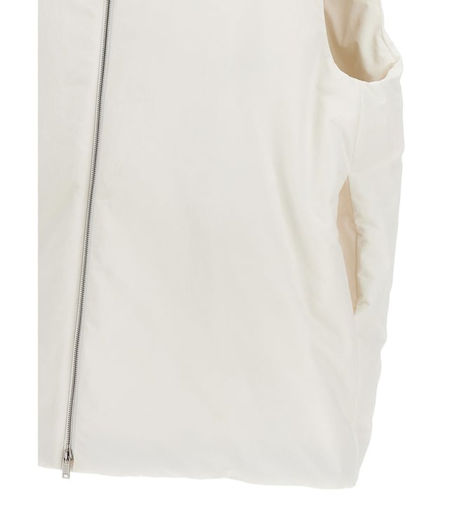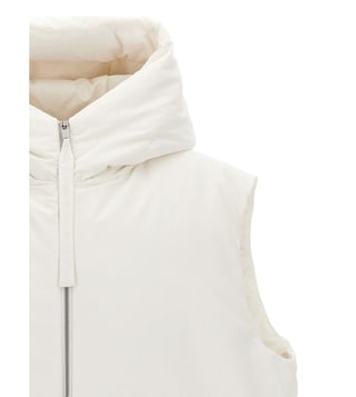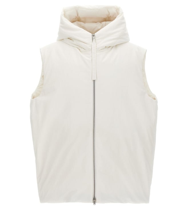 Elevate your style with the Jil Sander Off White Vest. 01' vest in nylon with hood, zip closure, pockets, adjustable drawstring at the hem. True to size fit. Products purchased from Darveys are supported exclusively by the warranty/exchange policies of Darveys and its partner boutiques. Brand owners and their channel partners are not responsible for exchange/warranty services for items purchased through Darveys.